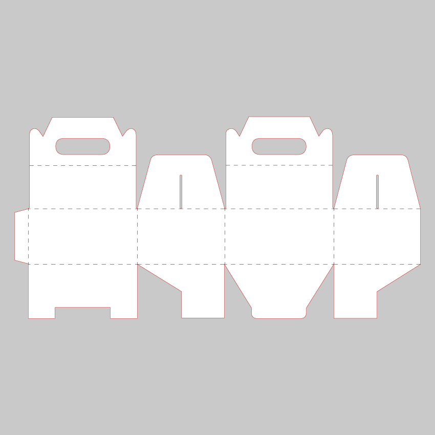 Dieser Tragegriff-Karton (Fefco 0217) eignet sich zur individuellen Bedruckung, beim dem als Grundmaterial weiße Wellpappe genutzt wird.Â