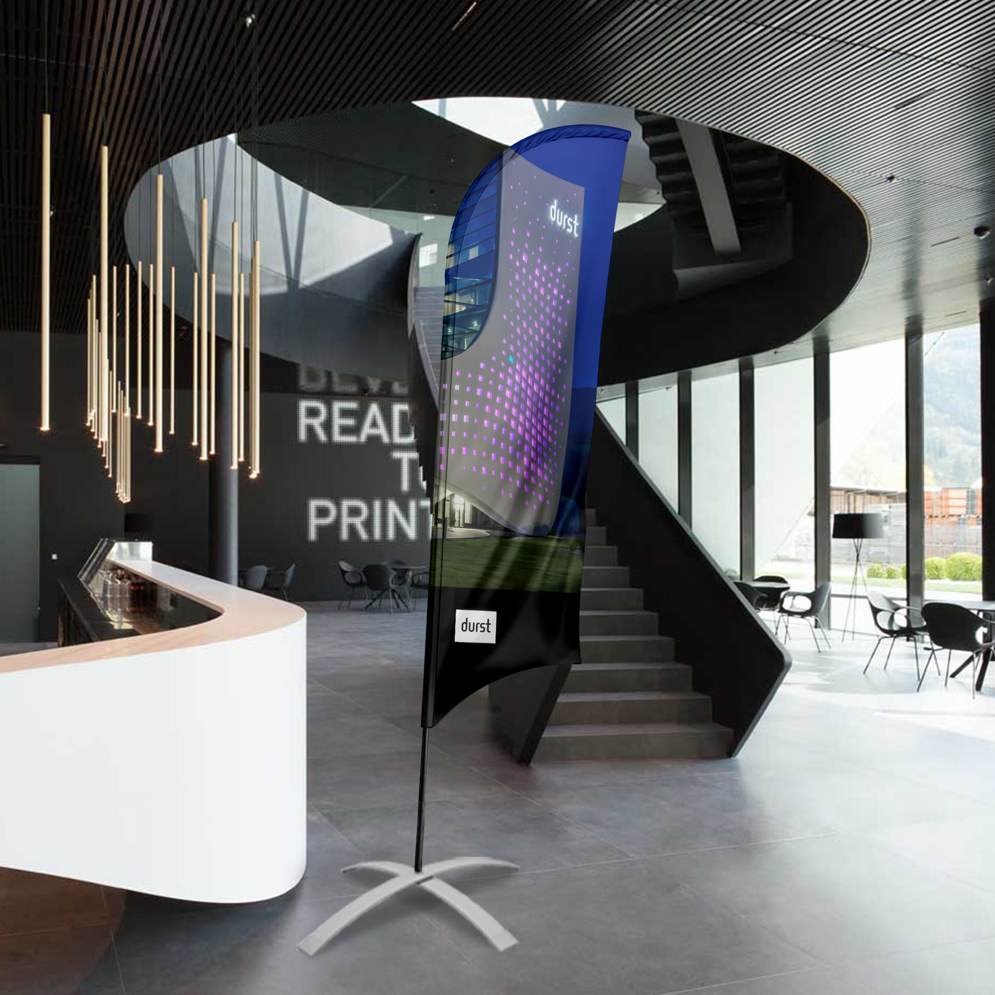 Make your advertising message even more attractive by presenting your logo and message on a beach flag. Beach flags are perfect for outdoor events, but can of course also be used indoors. Knitted polyester fabric. Easy to set up. Suitable for indoor and outdoor use. One-sided printing.