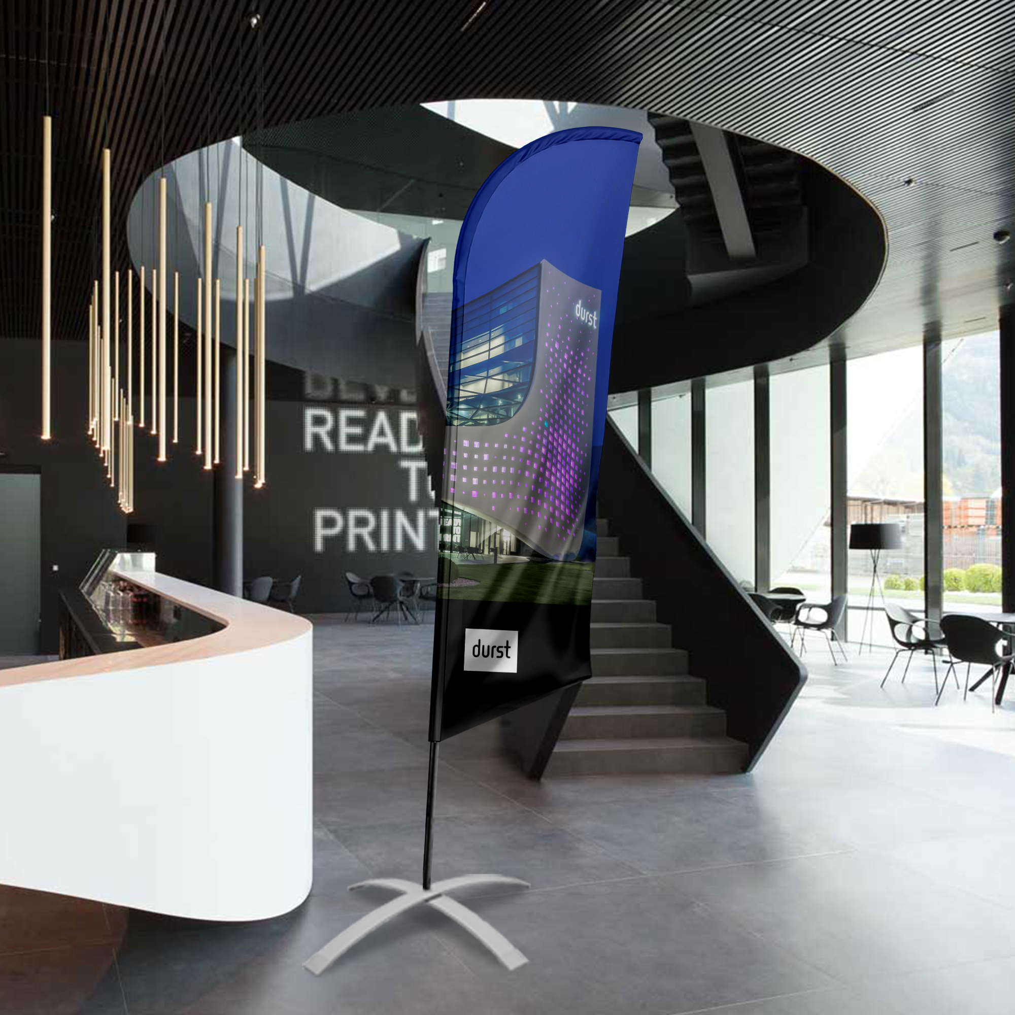 Make your advertising message even more attractive by presenting your logo and message on a beach flag. Beach flags are perfect for outdoor events, but can of course also be used indoors. Knitted polyester fabric. Easy to set up. Suitable for indoor and outdoor use. Printing on one side.