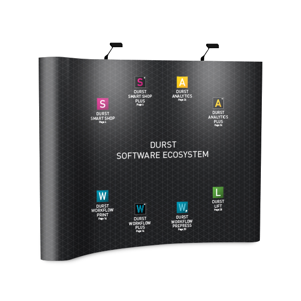 Very high quality and easy to install PopUp wall with curved front. The motifs made of laminated display foil are attached to the system by means of magnetic strips. The scissor grid of the system can also be plugged together by magnets and just as quickly and easily dismantled.